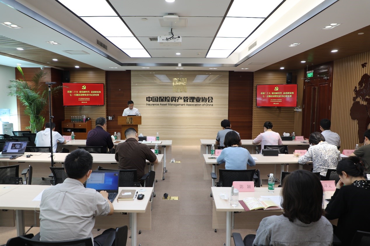 在七一來(lái)臨之際,中國(guó)保險(xiǎn)資產(chǎn)管理業(yè)協(xié)會(huì)和中國(guó)精算師協(xié)會(huì)聯(lián)合黨委(以下簡(jiǎn)稱“聯(lián)合黨委”)召開(kāi)“喜迎二十大 建功新時(shí)代 奮進(jìn)新征程”七一主題座談會(huì)暨黨委書(shū)記講黨課。聯(lián)合黨委書(shū)記、中國(guó)保險(xiǎn)資產(chǎn)管理業(yè)協(xié)會(huì)執(zhí)行副會(huì)長(zhǎng)兼秘書(shū)長(zhǎng)曹德云同志出席活動(dòng)并發(fā)言,聯(lián)合黨委委員、中國(guó)保險(xiǎn)資產(chǎn)管理業(yè)協(xié)會(huì)副會(huì)長(zhǎng)賀竹君同志主持會(huì)議。聯(lián)合黨委委員、兩家協(xié)會(huì)班子成員、全體正式黨員、預(yù)備黨員及入黨積極分子參加了本次活動(dòng)。