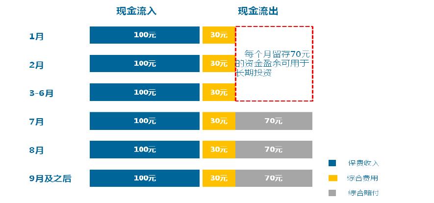 由于財產(chǎn)保險公司傳統(tǒng)保險產(chǎn)品滾動投保的特性,日常資金流入流出過程中,賬戶中將留有一定資金,其數(shù)量相對穩(wěn)定,該部分資金為“沉淀資金”,即中短期之內(nèi)不會用于日常經(jīng)營活動支付的資金,以車險為例,考慮最簡單的情形,假設保單綜合成本率為100%,其中綜合費用率30%(首日發(fā)生),綜合賠付率70%,賠付在起保后的6個月發(fā)生,承保業(yè)務平均分布,在持續(xù)經(jīng)營的情況下,前半年的留存資金將形成“沉淀資金”,可用于長期投資。在實際的業(yè)務活動中,受承保進度、賠付波動、費用漲跌、收款及付款進程等因素影響,現(xiàn)金流會發(fā)生一定程度的波動,從而對“沉淀資金”的度量帶來一定的難度。另外股東的股本投資作為長期性的投資,該部分資金也屬于“沉淀資金”??傊旊U公司的資金是可以通過沉淀來達到長期運作的目的,這部分資金可以為國家的重大發(fā)展戰(zhàn)略,以及實體經(jīng)濟發(fā)展提供有力支持。
