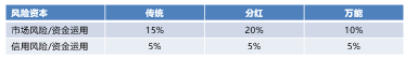 基于以上考慮,我們做出了第一次優(yōu)化:考慮風(fēng)險(xiǎn)調(diào)整后的成本與收益匹配。假設(shè)不同賬戶市場與信用風(fēng)險(xiǎn)資本占資金應(yīng)用的比例如下(資本成本率8%):