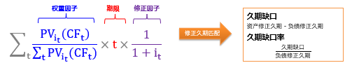 保險(xiǎn)行業(yè)較普遍采用修正久期管理資產(chǎn)負(fù)債期限結(jié)構(gòu)匹配。公式如下: