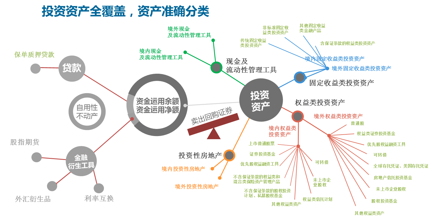 資產(chǎn)分類是量化評估的基礎(chǔ),資產(chǎn)分類直接影響到后面所有評估,包括現(xiàn)金流匹配、沉淀資金匹配和成本收益匹配,所以分類時要根據(jù)填報指引的要求,對每一項資產(chǎn)進行仔細分類,特別是非標資產(chǎn),哪些是屬于權(quán)益資產(chǎn),哪些是屬于固定收益資產(chǎn),需要把當初的投資合同全部拿出來仔細核對,是否符合明股實債,是權(quán)益類還是固定收益類,都需要進行明確區(qū)分。量化評估時要以資產(chǎn)明細作為基礎(chǔ),將每項資產(chǎn)的資產(chǎn)分類、會計分類、投資成本和浮動盈虧、投資收益、內(nèi)部評級、外部評級、行業(yè)分類、屬于高流動資產(chǎn)還是中低流動資產(chǎn)等全部要素作為一條信息進行處理,把所有資產(chǎn)的明細信息放在一張表格中,以此為基礎(chǔ),資金運用規(guī)模、固定收益類投資資產(chǎn)剩余期限分布、資產(chǎn)信用狀況、期限結(jié)構(gòu)匹配、成本收益匹配、現(xiàn)金流匹配等報表都可以出來,而且由于數(shù)據(jù)來自于同一個源頭,數(shù)據(jù)不容易出錯。