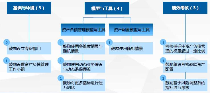 模型與工具包含資產(chǎn)負(fù)債管理模型與工具與資產(chǎn)配置模型與工具兩個(gè)部分。評(píng)估標(biāo)準(zhǔn)明確了資產(chǎn)負(fù)債管理模型與工具和資產(chǎn)配置管理模型與工具應(yīng)當(dāng)滿足的最低標(biāo)準(zhǔn)。