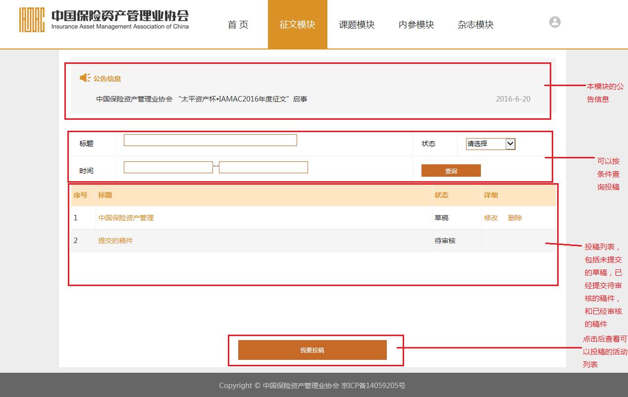 中國(guó)保險(xiǎn)資產(chǎn)管理業(yè)協(xié)會(huì)“征稿系統(tǒng)”征文模塊使用說(shuō)明