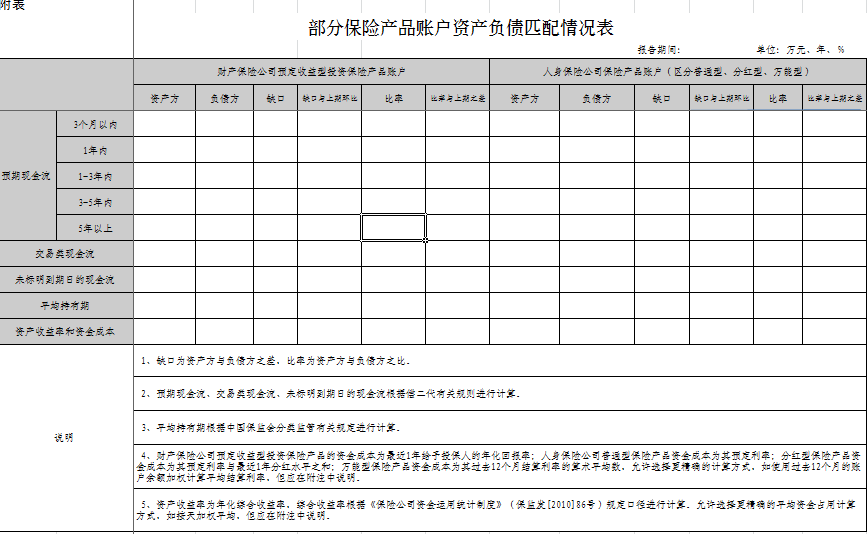 附表:部分保險產(chǎn)品賬戶資產(chǎn)負債匹配情況表