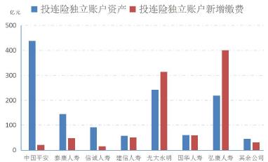 圖4:2016年我國壽險(xiǎn)公司投連險(xiǎn)獨(dú)立賬戶資產(chǎn)和新增繳費(fèi)情況