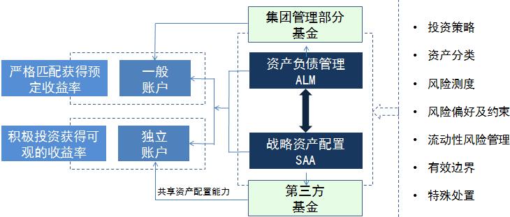三是運(yùn)用專業(yè)模型。開發(fā)或引入專業(yè)化資產(chǎn)負(fù)債和戰(zhàn)略資產(chǎn)配置模型,持續(xù)開展各種環(huán)境下風(fēng)險(xiǎn)因子定性定量分析,將模型分析結(jié)果與戰(zhàn)略規(guī)劃、產(chǎn)品定價、資產(chǎn)配置等內(nèi)容相掛鉤,強(qiáng)化決策支持作用和戰(zhàn)略資產(chǎn)配置有效性。