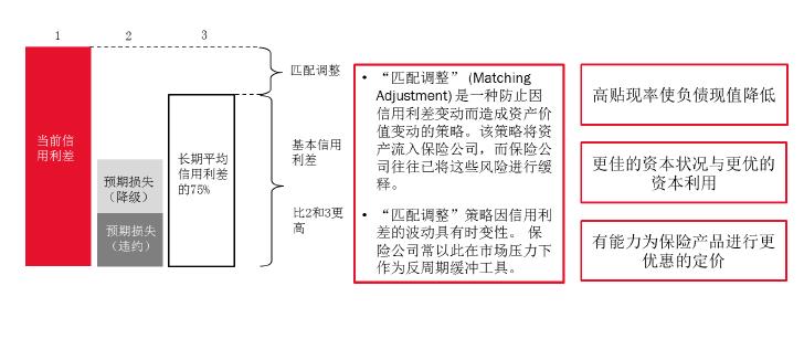 同時,匹配調(diào)整的應(yīng)用也是典型的逆周期監(jiān)管。例如市場如果再經(jīng)歷2008、2009年信用利差放大的情況,如保險公司通過資產(chǎn)負債匹配獲得匹配調(diào)整的優(yōu)勢,該保險公司實際上等于做到反周期投資。因為假設(shè)當(dāng)信用利差為100個基點時,預(yù)期損失有大約50個基點,但是當(dāng)信用利差擴大到500個基點時,假設(shè)長期違約風(fēng)險沒有顯著增高,那么預(yù)期損失可能從50個基點變成100個或者200個基點。 但是2008年有些投資級信用債的利差達到500-700基點,即使減去200還有非常高的信用利差加到貼現(xiàn)率上,這使得在經(jīng)濟周期波動的時候,整個償付能力不會有特別大的波動,可做到風(fēng)險控制。這就是我們看到很多做保障型年金的保險公司把資產(chǎn)負債現(xiàn)金流匹配的非常接近,就是為了能夠拿到匹配調(diào)整這樣的優(yōu)惠待遇。當(dāng)然監(jiān)管要求也非常嚴(yán),并不是所有的資產(chǎn)都可以作為匹配調(diào)整的資產(chǎn)。一定要是固定收益資產(chǎn),現(xiàn)金流里面必須是固定的現(xiàn)金流,不能有一些提前贖回的條件或者是可轉(zhuǎn)債,必須是最標(biāo)準(zhǔn)的投資級的信用債產(chǎn)品才可以做匹配調(diào)整。