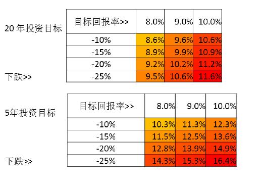 長期投資者一般會有長期投資目標(biāo),包括年投資回報預(yù)期,目標(biāo)資產(chǎn)規(guī)模等等。但如果遭遇一次經(jīng)濟周期帶來的波動,在目前波動率非常高的市場環(huán)境里,投資決策失誤的影響是非常大的。通過下圖可以展示,如果投資決策失誤,資產(chǎn)配置里權(quán)益類資產(chǎn)表現(xiàn)不佳,比如針對大型機構(gòu)投資者20年的投資目標(biāo),若第一年權(quán)益類下跌20%,那么每年都要獲得額外1.2%的回報才能把20%損失補回來。這還是20年的投資周期,一年的損失平攤到20年。如果是20%的損失發(fā)生在投資期限還剩5年的時候,那么要想達到預(yù)計的投資目標(biāo),那就需要今后5年平均年投資回報有5%以上的漲幅,這對大型機構(gòu)投資者來講還是非常大的壓力的。雖然權(quán)益類的資產(chǎn)其實是非常好的、優(yōu)質(zhì)的,但從長期來看,如果不能夠很準(zhǔn)確的把握市場經(jīng)濟周期的變化,那么遲早會遇到大幅度損失的幾率,即使20年遇到一次都會有比較大的影響。