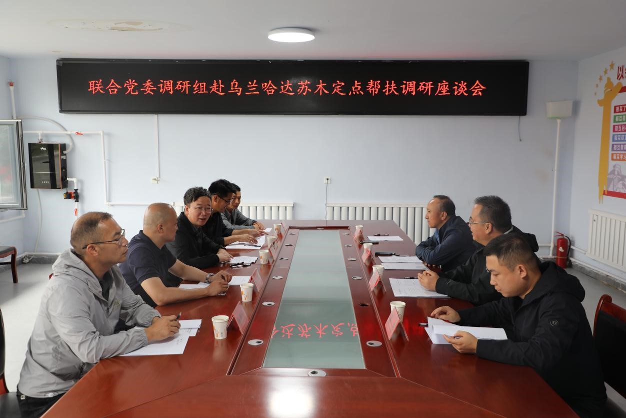 調(diào)研組與察右后旗委旗政府、烏蘭哈達(dá)蘇木黨委政府有關(guān)負(fù)責(zé)同志以及駐村第一書記等工作人員圍繞當(dāng)?shù)剜l(xiāng)村振興工作情況和定點(diǎn)幫扶工作需求開展座談交流。