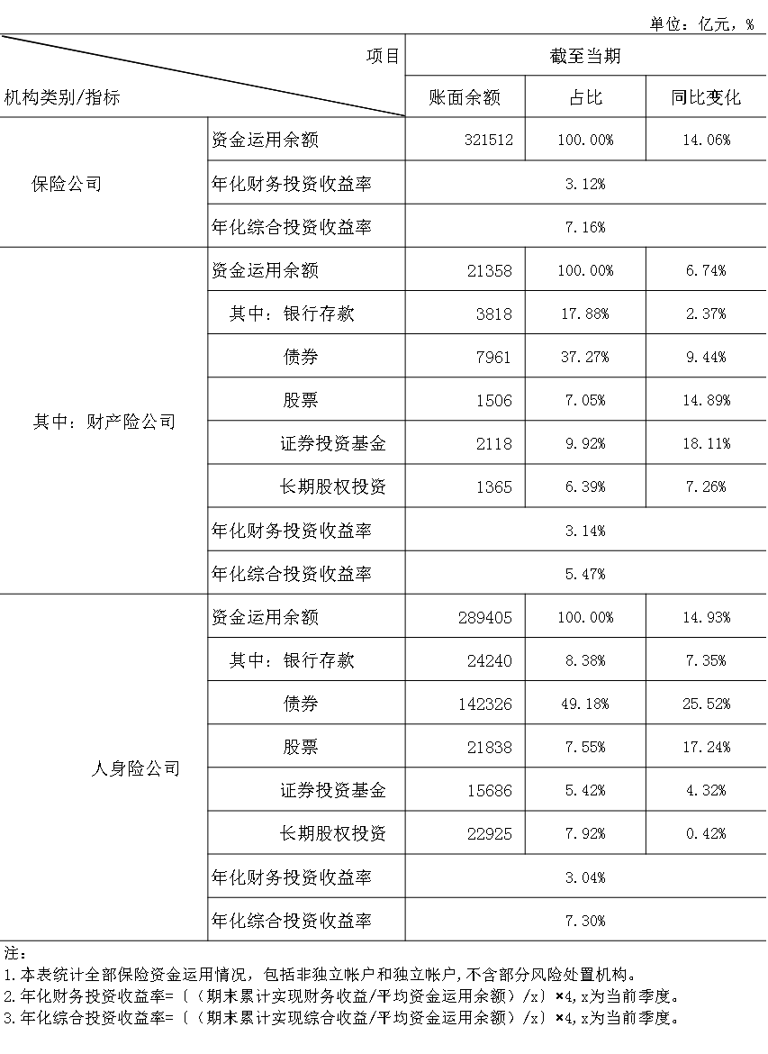 2024年3季度保險(xiǎn)業(yè)資金運(yùn)用情況表