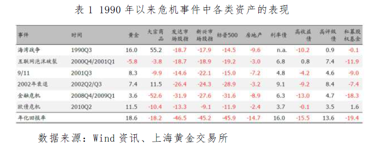 黃金作為避險資產,是尾部風險的避風港。從1990年后的歷史收益來看,黃金在歷次危機事件中的表現(xiàn)較好,無論是海灣戰(zhàn)爭、美國互聯(lián)網泡沫破滅、911事件、美國次貸危機、歐洲債務危機等,黃金在危機事件期間的表現(xiàn)均比較優(yōu)異,平均年化收益率高達18.6%,遠遠高于股票、債券、房地產等其他大類資產。在當前全球增長放緩、國際政治經濟形勢動蕩、國內股市低迷、息差持續(xù)收窄、預期回報率下行的環(huán)境下,黃金可以為保險資金提供有效的保值增值和避險渠道。