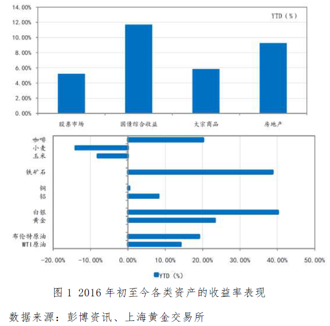 總體較差的國際經濟形勢與美聯(lián)儲放緩加息步伐是2016年金價獲得支撐的主要影響因素,同時年初歐洲金融事件集中爆發(fā)與年中英國意外脫歐等突發(fā)事件成為金價階段性大漲的導火索,推動黃金成為今年目前為止表現(xiàn)最好的資產品種之一。