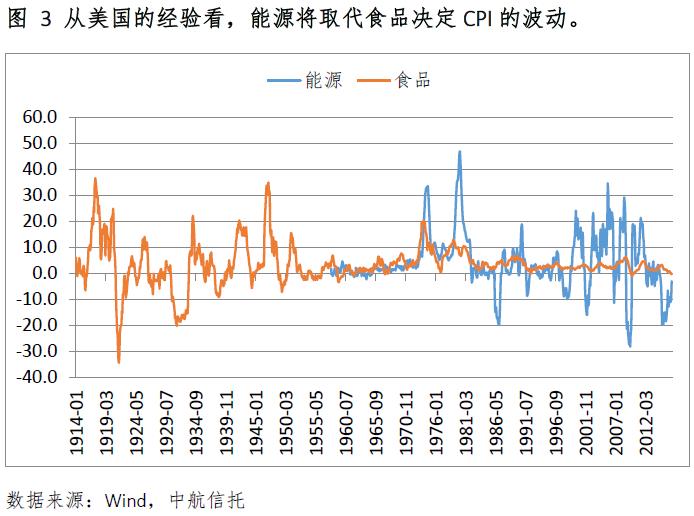 食品項(xiàng)CPI波動幅度有望減緩。目前,以豬肉、鮮菜為代表的食品項(xiàng)CPI波動較大,往往決定了CPI的走勢。從美國的經(jīng)驗(yàn)看,未來幾年這種狀況有望好轉(zhuǎn)。1950年之前美國食品項(xiàng)CPI的波動也十分劇烈。隨著美國農(nóng)業(yè)人均資本存量的增加,1950年之后能源逐步取代食品成為決定CPI波動的關(guān)鍵因素。