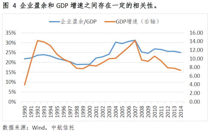 預(yù)計(jì)未來幾年,企業(yè)盈余在GDP中占比保持穩(wěn)定,企業(yè)利潤增速同GDP增速基本持平,盈利增速在5%到7%之間。