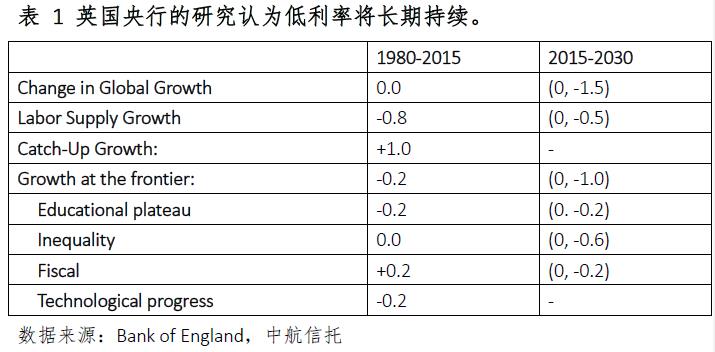 在未來幾年,全球可能仍將處于低利率時(shí)代。根據(jù)英格蘭銀行的Lukasz Rechel和Thomas D Smith[3]的研究,過去三十年,全球的實(shí)際利率下行了約450BP,驅(qū)動利率下行的主要因素是儲蓄和投資的轉(zhuǎn)換,其中,人口因素、日益嚴(yán)重的全球不平等、發(fā)展中國家過多的預(yù)防性儲蓄改變了全球儲蓄,而資本相對價(jià)格的下降、下滑的公共支出以及風(fēng)險(xiǎn)溢價(jià)的上行導(dǎo)致了投資的下滑。近年來,全球經(jīng)濟(jì)增速的下滑也成為拖累利率的重要因素。