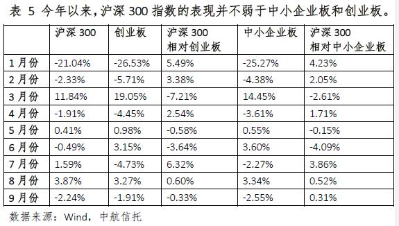 從市場監(jiān)管、估值等多個(gè)角度看,具有業(yè)績的價(jià)值股未來表現(xiàn)有望較好。首先,監(jiān)管層“依法、從嚴(yán)、全面監(jiān)管”的理念逐步深入,監(jiān)管層不斷打擊借殼、題材炒作等行為,市場整體的風(fēng)格較有利于價(jià)值股。其次,從估值的角度看,中小板、創(chuàng)業(yè)板中的成長股估值過高,平均市盈率分別為66倍和49倍,盈利增速并不足以支撐估值。第三,新監(jiān)管層就職以來,以滬深300指數(shù)為代表的價(jià)值股表現(xiàn)不弱。今年除了3月和6月,其他月份的表現(xiàn)均好于中小企業(yè)板和創(chuàng)業(yè)板。