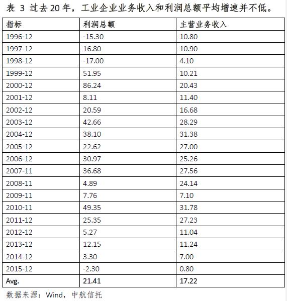 長期來看,企業(yè)盈利的調(diào)整取決于兩個(gè)變量:一是經(jīng)濟(jì)增長速度、二是企業(yè)利潤份額占經(jīng)濟(jì)的比例。整體企業(yè)盈利增速變化和經(jīng)濟(jì)周期趨勢上是一致的。從歷史上看,GDP增速是驅(qū)動企業(yè)盈利的關(guān)鍵,并且領(lǐng)先于企業(yè)盈利增速。數(shù)據(jù)顯示,經(jīng)濟(jì)增速較高時(shí),企業(yè)盈余在GDP的占比也較高,這是因?yàn)槠髽I(yè)具有剩余所有權(quán)。雖然近幾年企業(yè)利潤總額和業(yè)務(wù)收入增速有所下滑,目前,企業(yè)盈余在GDP中占比基本穩(wěn)定,并未跟隨GDP增速明顯下滑。歷史上,中國企業(yè)的盈利增速平均接近20%,即使未來有所下滑,但也有望保持一定的增速。