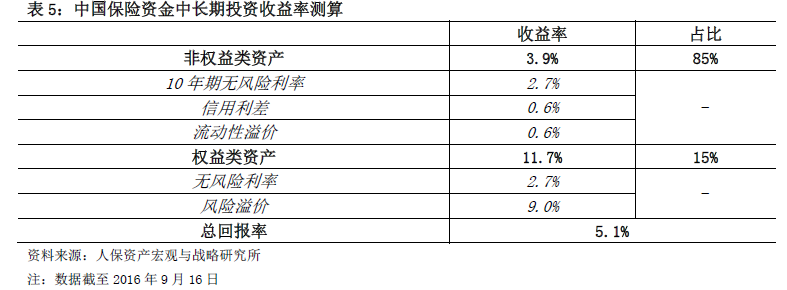 (二)未來3年中國保險資金可獲得的投資收益率在5.1%左右