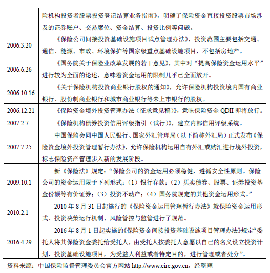 可以說,保險資金運用的發(fā)展伴隨著相關(guān)法律法規(guī)的不斷完善,兩者相輔相成。隨著經(jīng)濟(jì)社會的不斷進(jìn)步,我國保險公司傳統(tǒng)意義上的“重保險業(yè)務(wù)、輕保險資金運用”的狀況已明顯改善,如今保險投資已成為資本運作的重要內(nèi)容,亦成為學(xué)術(shù)研究的理論熱點。如果以1995年《保險法》正式實施為起點,至今保險資金運用已歷經(jīng)二十余年的發(fā)展,可以分為如下幾個階段: